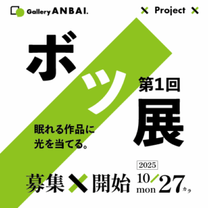 ABOUT 大阪・梅田の中心に位置する新鋭デジタルギャラリー最新鋭の高画質ディスプレイを通じて、写真・映像・グラフィックアートなど、あらゆるビジュアル表現をここ大阪の中心から発信いただけます。8K対応・85インチの大型ディスプレイ1台と、4K対応・32インチディスプレイ15台を備えており、いずれも大阪・関西万博にも出展された高性能モデル。すべてのディスプレイは広色域・超高解像度に対応し、反射を抑えた特殊な無反射パネルを採用しています。外光の映り込みに左右されることなく、作品本来の色彩や質感を忠実に映し出します。Gallery ANBAI. は、ただ作品を『映す』だけでなく、表現と鑑賞が響き合う空間として存在しています。 READ MORE EXHIBITION Gallery ANBAI. ×Project× ボツ展開催のお知らせ 2025/11/19 - 2025/11/30 出番を逃したあの作品、どこかに仕舞い込んだあの一枚。そんな思入れのある“ボツ”作品たちに、もう一度光を当てるデジタル公募展です。「ボツ」と言っても、それはあなたの大切な創作のひとつ。この機会にもう一度見つめてみませんか。応募は無料。 10月27日(月)から作品募集開始! READ MORE NEWS 第1回ボツ展開催のお知らせ出番を逃したあの作品、どこかに仕舞い込んだあの一枚。 そんな思入れのある“ボツ”作品たちに、もう一度光を当てるデジタル公募展を開催します。 続きを読む Q&Aセッション開催のお知らせ Q&Aセッション を開催します!アンケートにお答えいただいた方には展示料割引クーポン配布★ 続きを読む いよいよ明日!OPEN!9月20日(土) ギャラリーOPEN !! Special Exhibition 『CAMERA no NANIWA』 続きを読む RENTAL READ MORE ACCESS 〒530-0012大阪府大阪市北区芝田2-1-3梅仙堂ビル 4Finfo@anbai.art↑出展応募・問い合わせはこちらから